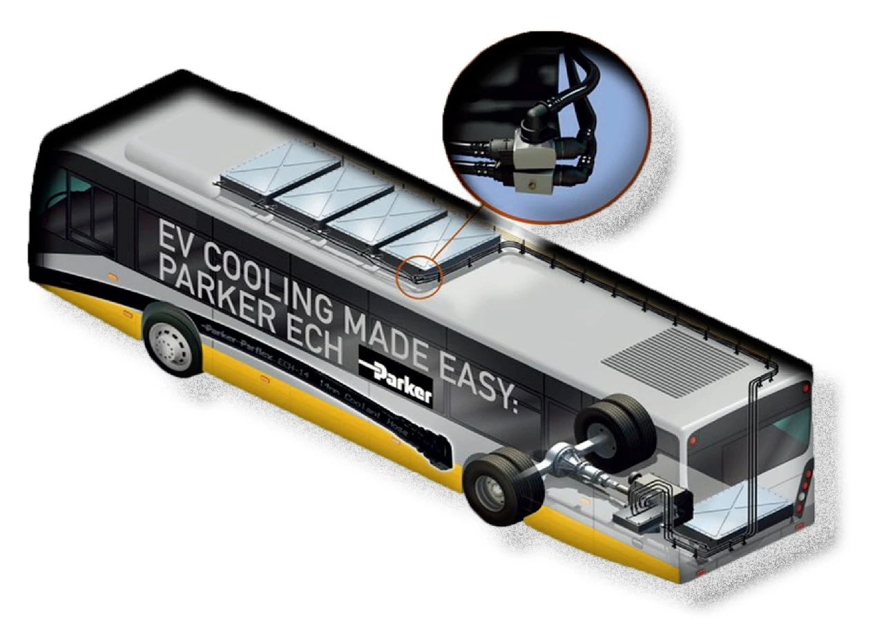 某公交車制造商在生產(chǎn)最新一代的電動(dòng)公交車時(shí),希望能夠采用創(chuàng)新的系統(tǒng)解決方案,以降低車輛原有電池冷卻系統(tǒng)的成本和復(fù)雜性。針對(duì)這一需求,派克漢尼汾為其設(shè)計(jì)打造全套冷卻系統(tǒng)解決方案——適用于水基冷卻劑的新型液冷分配技術(shù)方案,包括由輕質(zhì)熱塑性材料制成的ECH(電動(dòng)冷卻用軟管)軟管以及帶EPDM O形圈密封的VDA接頭。該方案安裝簡(jiǎn)便,更具成本效益,將幫助制造商節(jié)省至少25%的材料和人工成本。