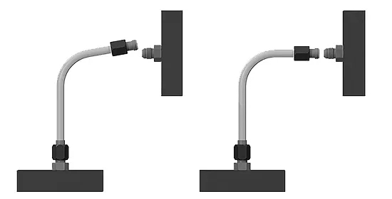 裝配的關(guān)鍵是使管的末端與連接接頭對齊。如果鋼管與接頭的密封面沒有對齊,就會形成管路的泄漏路徑。正確的操作是在螺母擰緊前,確認(rèn)鋼管與連接接頭的密封面對齊并正確地接觸,然后擰緊螺母。如果您的連接如圖1左側(cè)所示,則表明鋼管與接頭沒有對齊;如果您的連接如圖1右側(cè)所示,則表明鋼管與接頭沒有正確接觸。